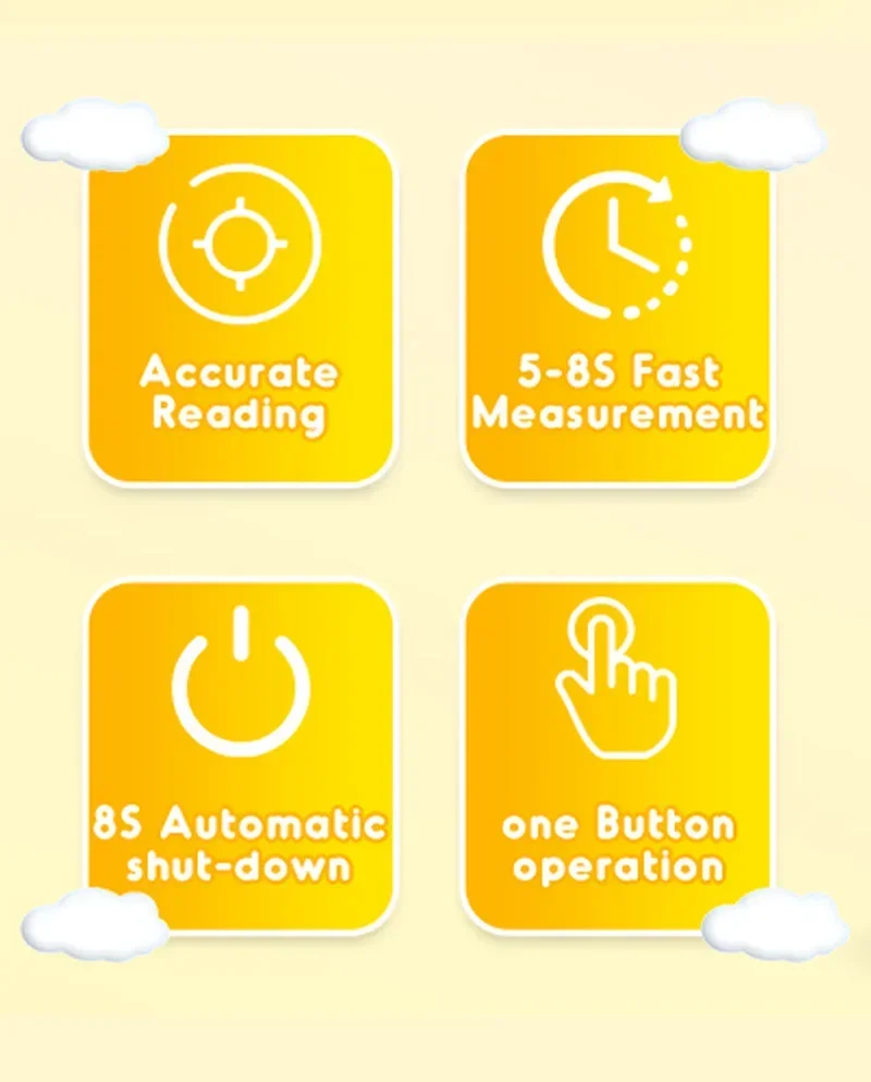 Seu design é confortável, anatômico e suave, permitindo a medição sem apertar ou machucar. A criança mantém os dedinhos relaxados enquanto o dispositivo faz a leitura de forma rápida e indolor.